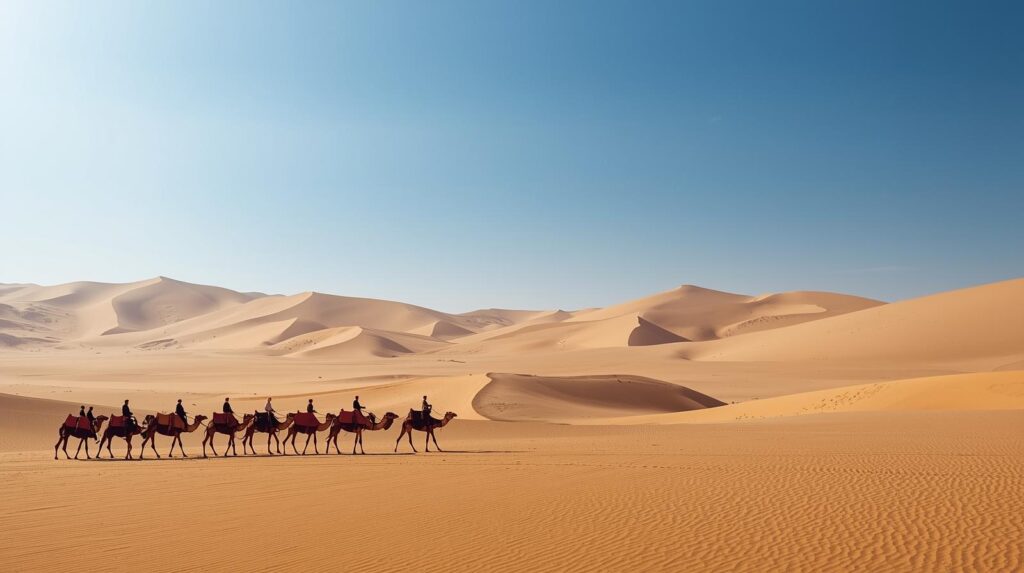 - Desierto del Sahara – Vive la experiencia de recorrer dunas infinitas en camello, dormir bajo las estrellas y disfrutar de un atardecer único.