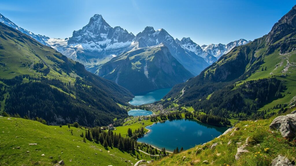 - Lagos suizos – Como el Lago de Lucerna, Lago de Ginebra y Lago de Zúrich, ideales para paseos en barco, deportes acuáticos y picnic junto al agua.